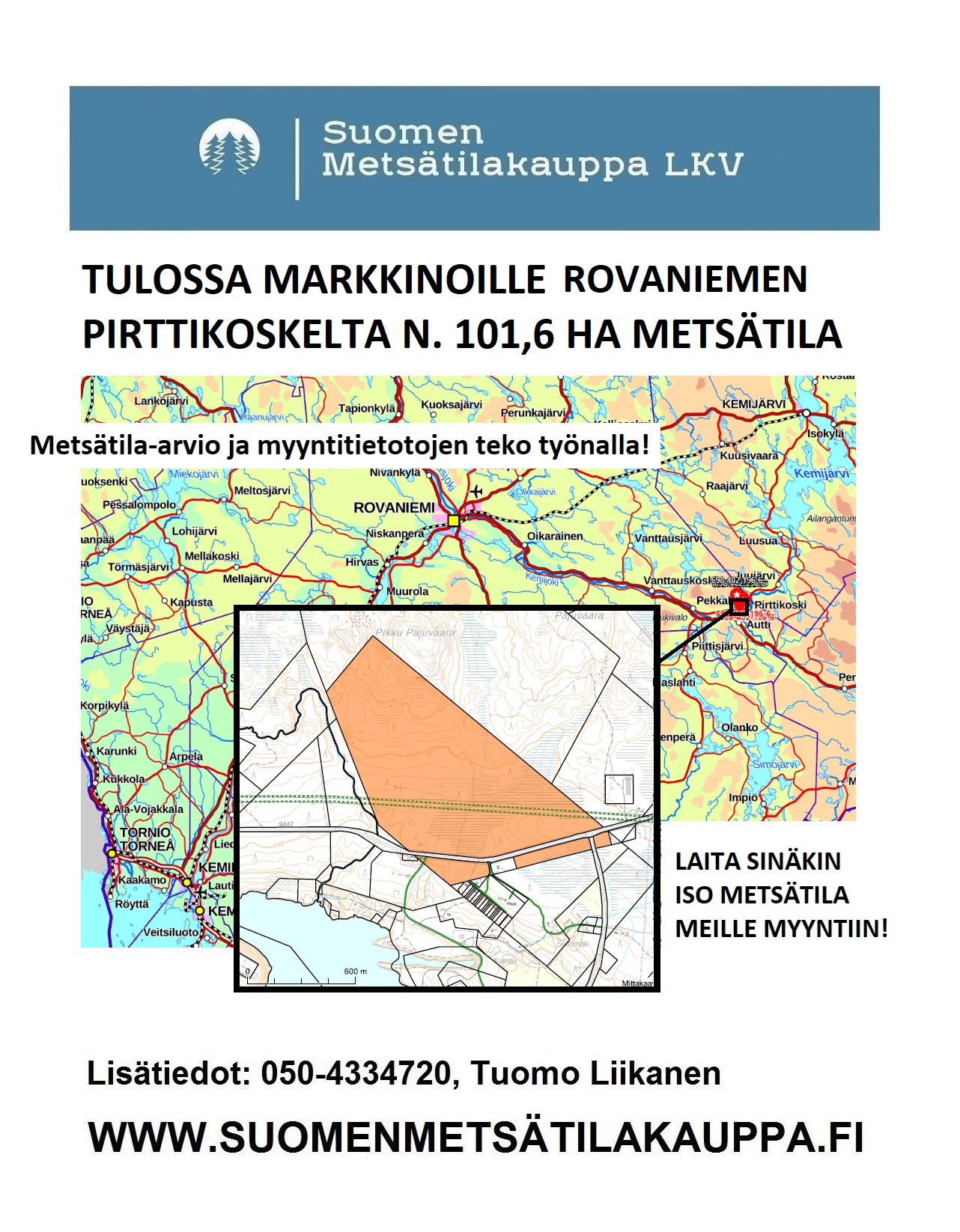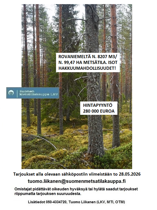 LAITA SINÄKIN ISO METSÄTILA MEILLE MYYNTIIN! Puh. 050-4334720, Tuomo Liikanen.